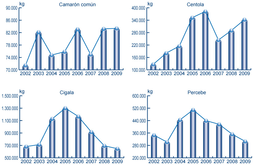 | Camarón común | 83.364 | 2.582.932 | 83.218 | 2.753.556 | 145 | -170.624 | 0,17% | -6,20% |