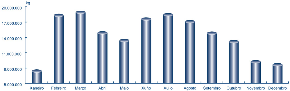 | Sardiña | 429.692 | 205.511 | 567.728 | 957.801 | 1.379.669 | 1.734.614 | 1.668.397 | 1.874.844 | 1.992.686 | 1.767.977 | 908.514 | 341.535 | 13.828.966 |