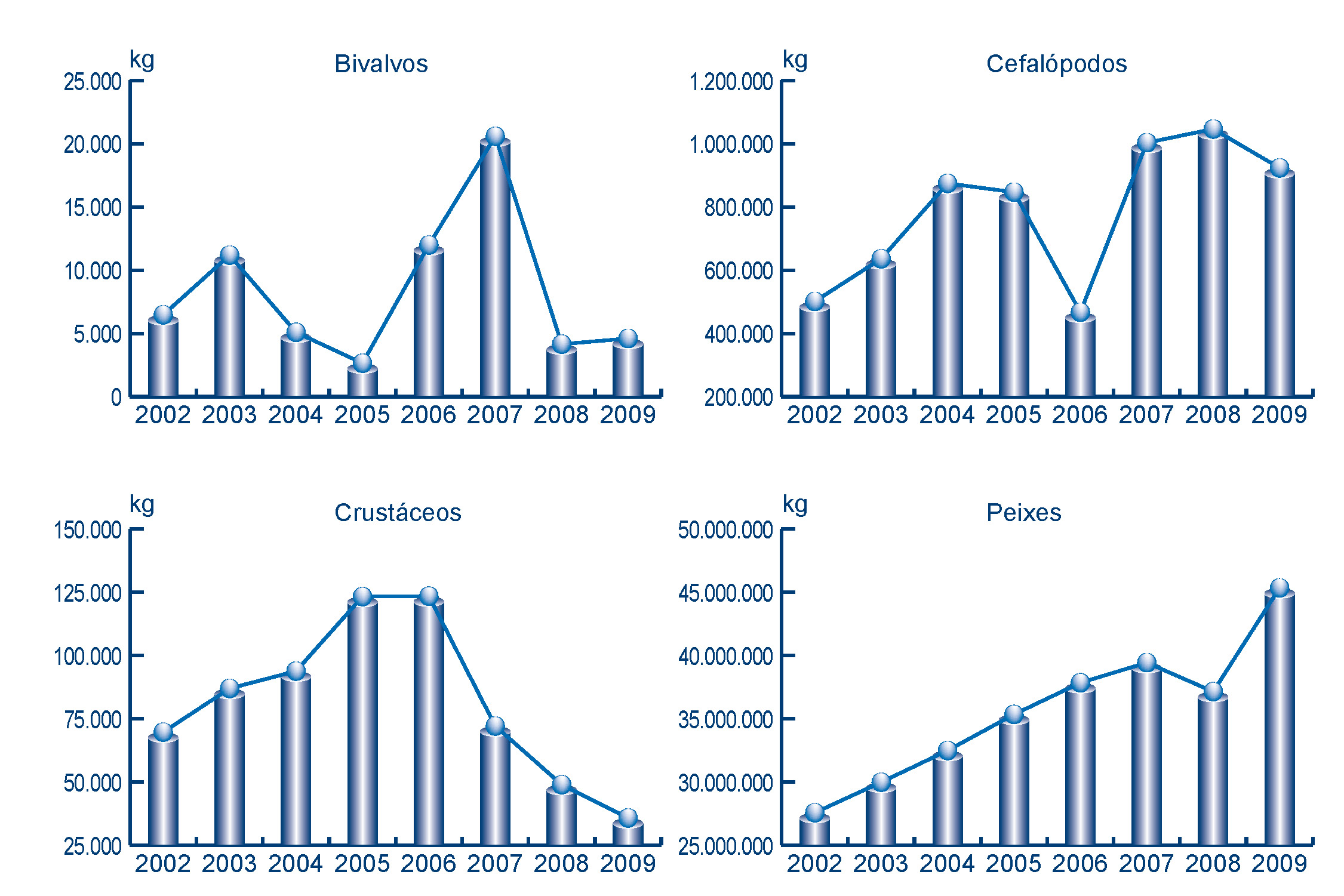 | Cefalópodos | 923.502 | 1.767.147 | 1.046.484 | 2.387.145 | -122.982 | -619.998 | -11,75% | -25,97% |