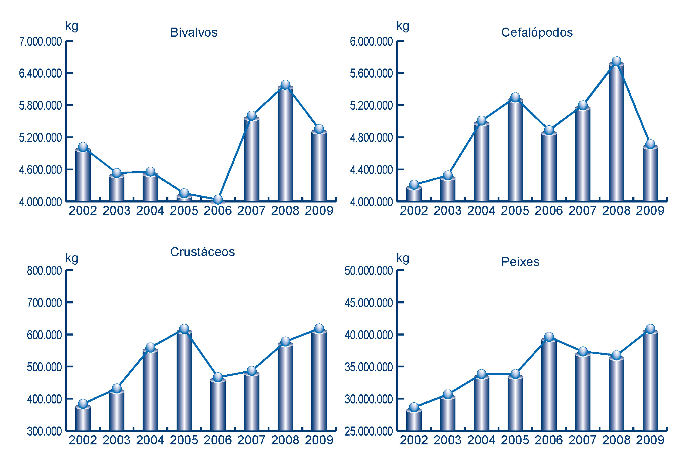 | Gasterópodos | 5.256 | 14.474 | 2.432 | 5.792 | 2.825 | 8.682 | 116,16% | 149,90% |