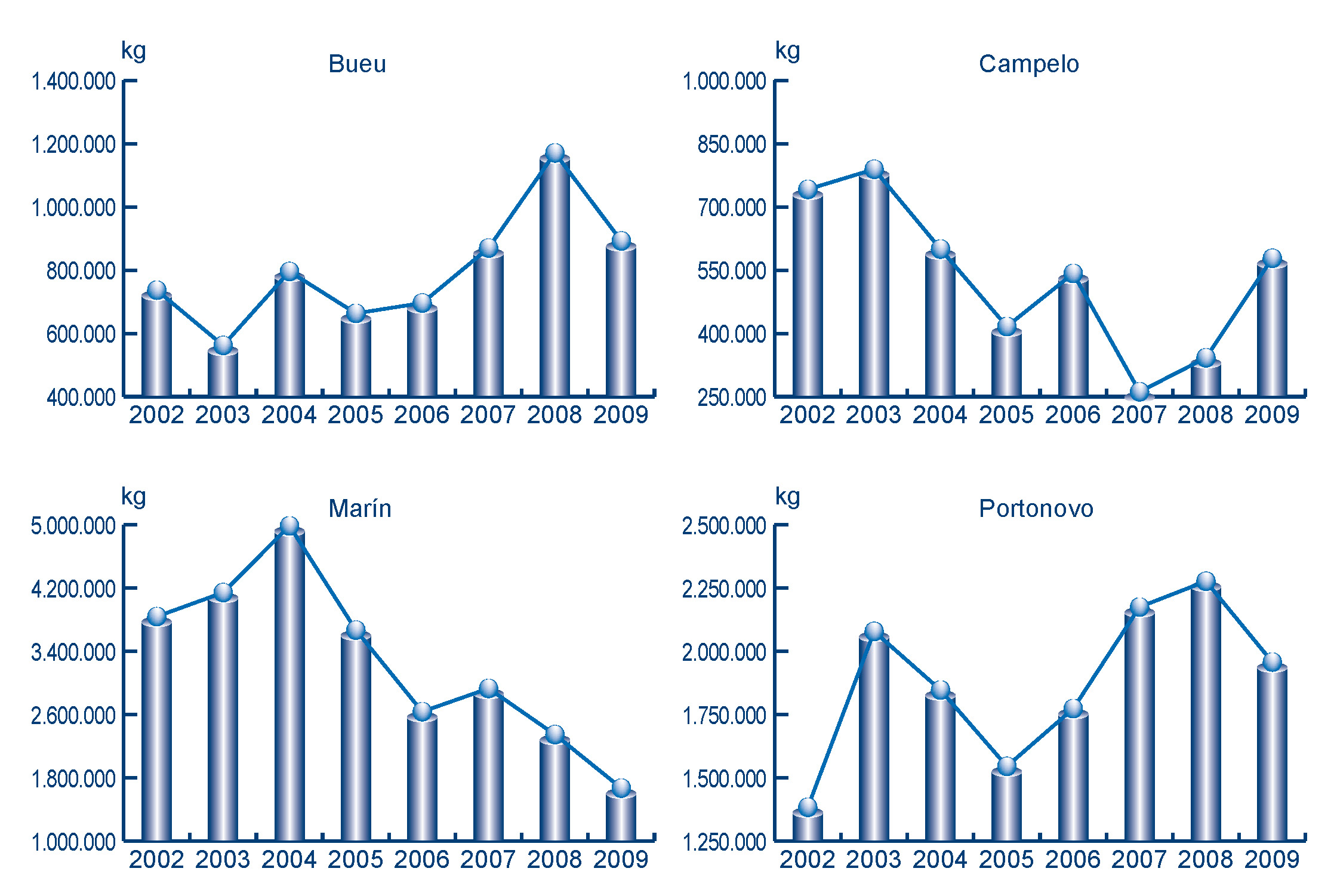 | Bueu | 892.591 | 2.906.614 | 1.170.933 | 3.806.884 | -278.342 | -900.270 | -23,77% | -23,65% |
