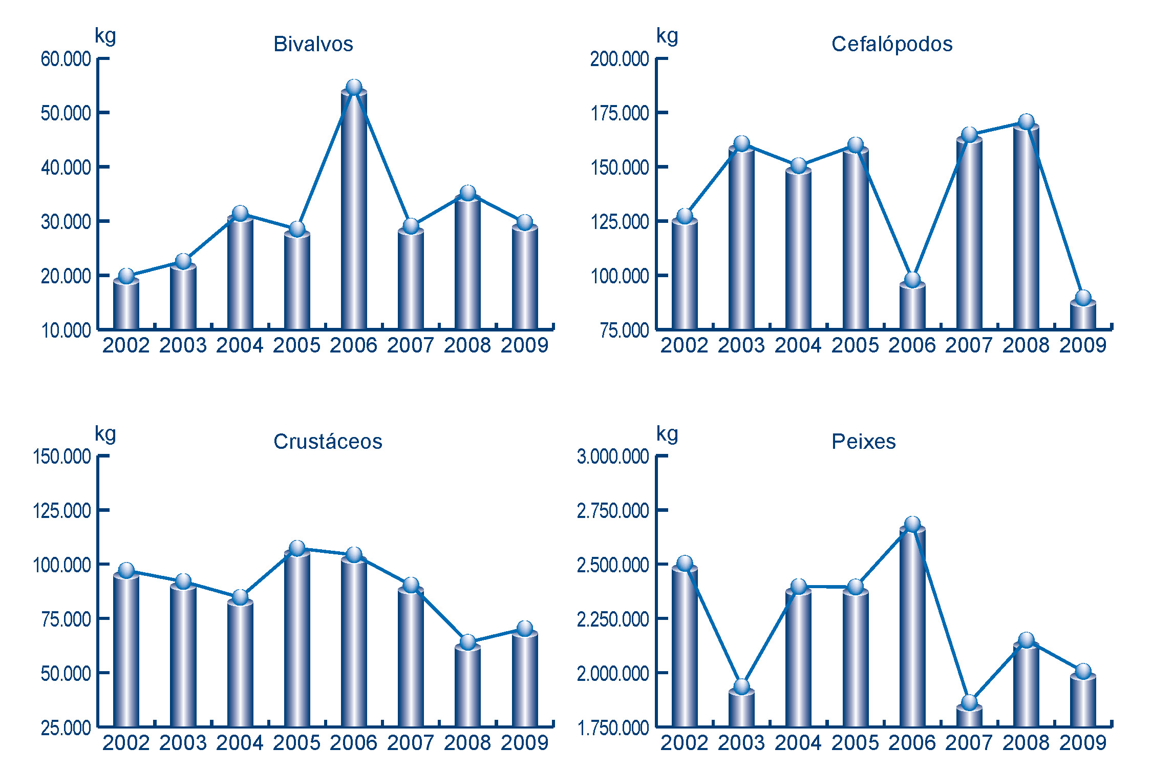 | Crustáceos | 70.344 | 1.878.314 | 64.039 | 1.976.323 | 6.305 | -98.009 | 9,85% | -4,96% |