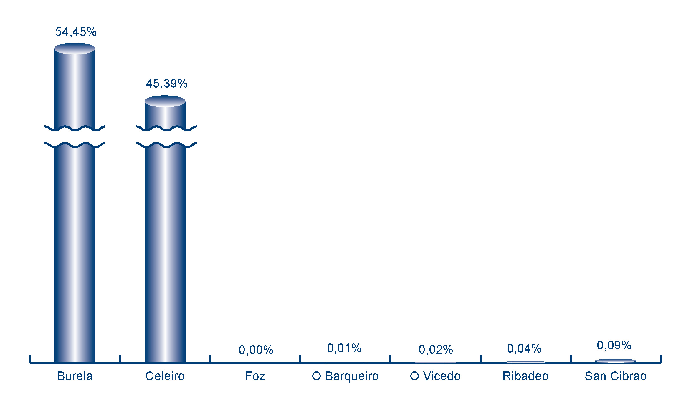 | San Cibrao | 41.831 | 0,09% | 471.461 | 0,53% | 11,27 |