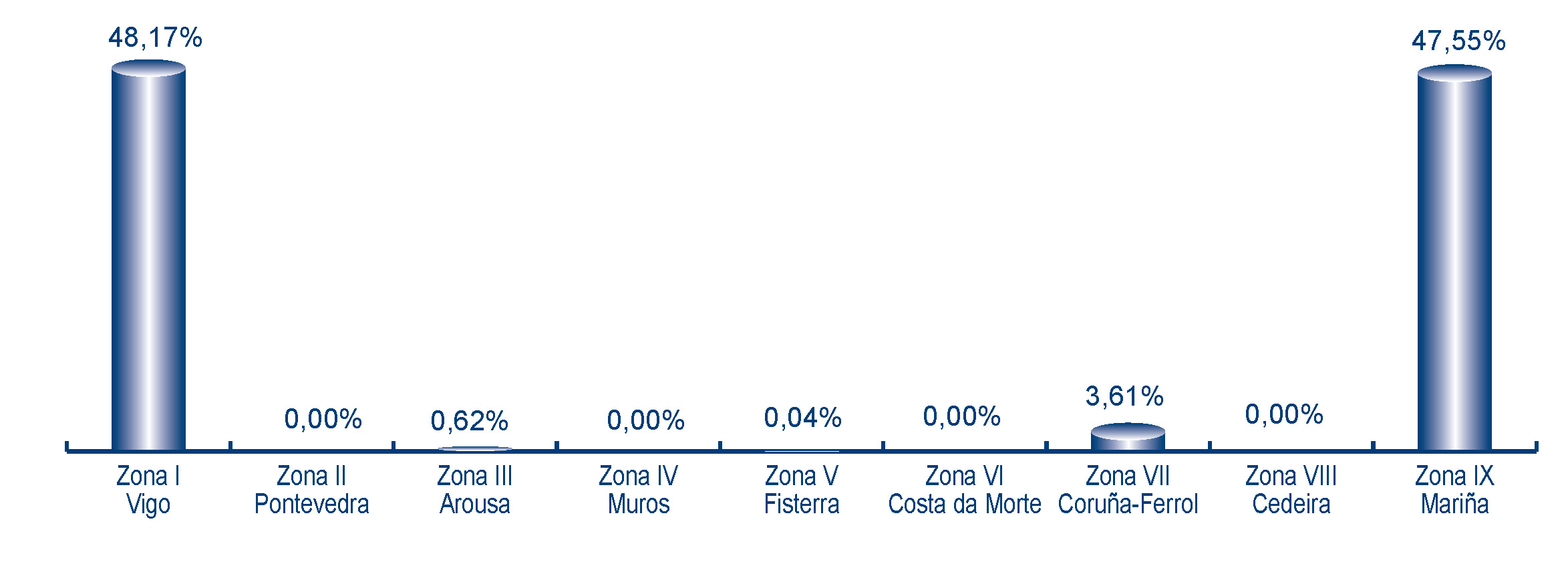 | Zona V - Fisterra | 49 | 1.824 | 0,04% | 5.234 | 0,06% | 2,87 |