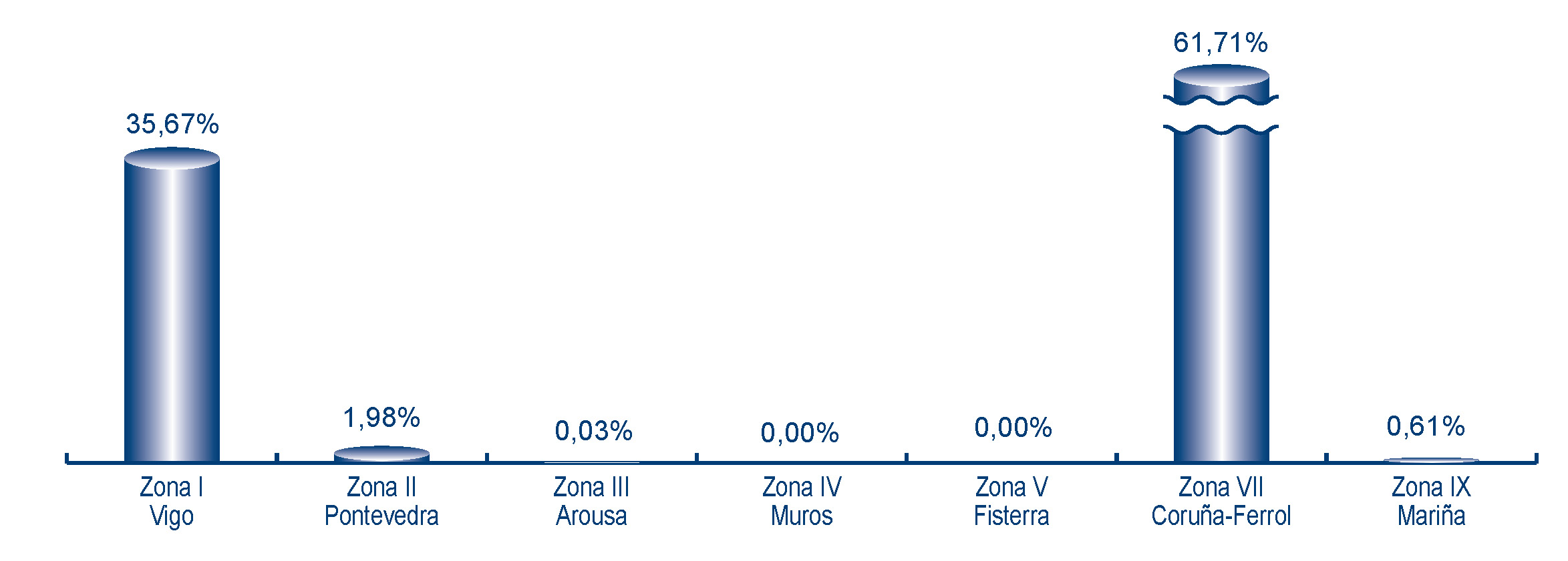 | Zona VII - Coruña-Ferrol | 277 | 399.611 | 61,71% | 5.898.588 | 71,28% | 14,76 |