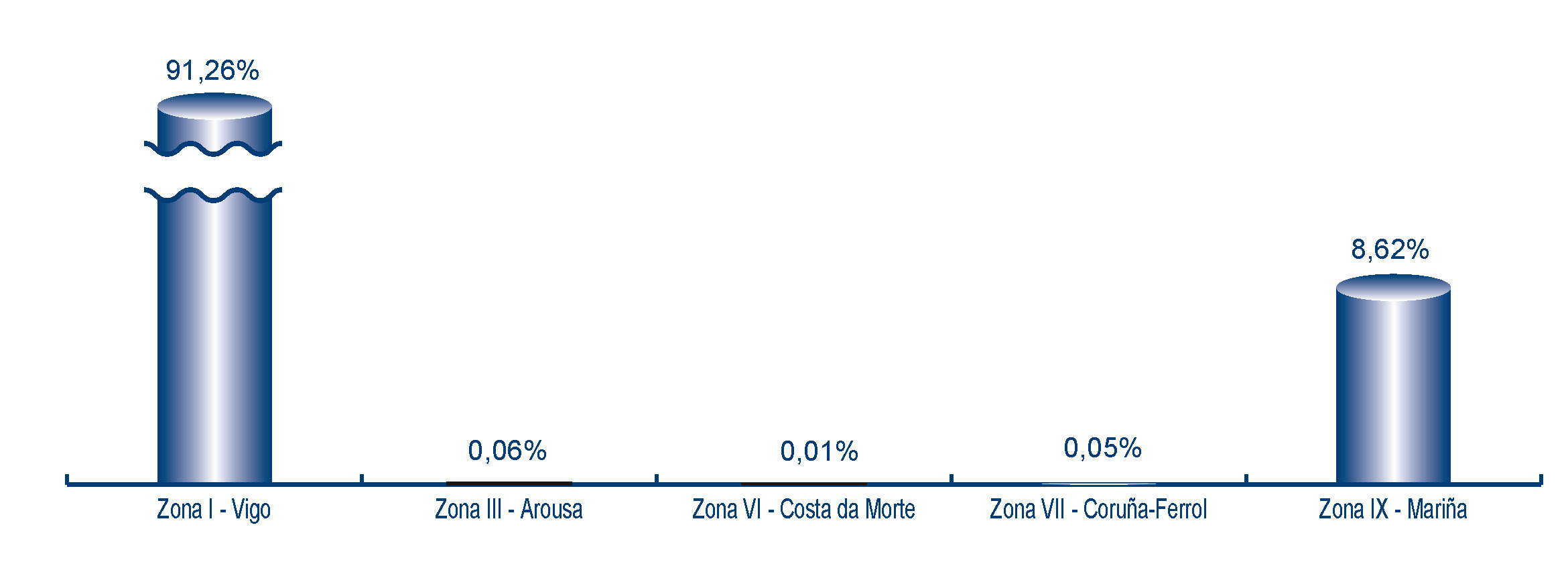 | Zona III - Arousa | 2 | 1.495 | 0,06% | 1.098 | 0,03% | 0,73 |