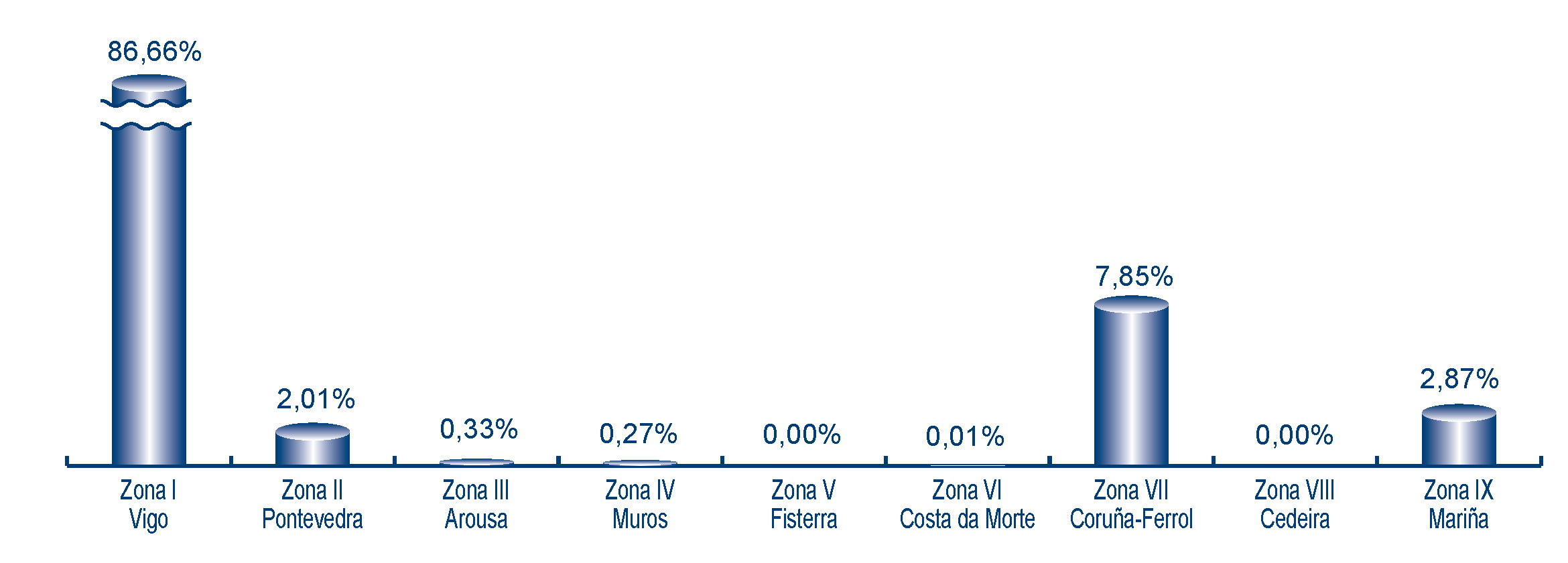| Zona VI - Costa da Morte | 154 | 888 | 0,01% | 7.294 | 0,03% | 8,21 |