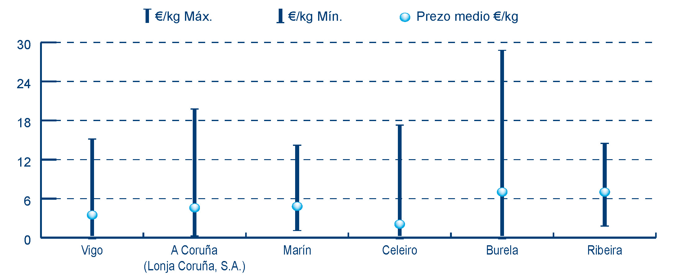 | A Coruña (Lonja Coruña, S.A.) | 294 | 595.696 | 7,85% | 2.732.365 | 9,97% | 4,59 |