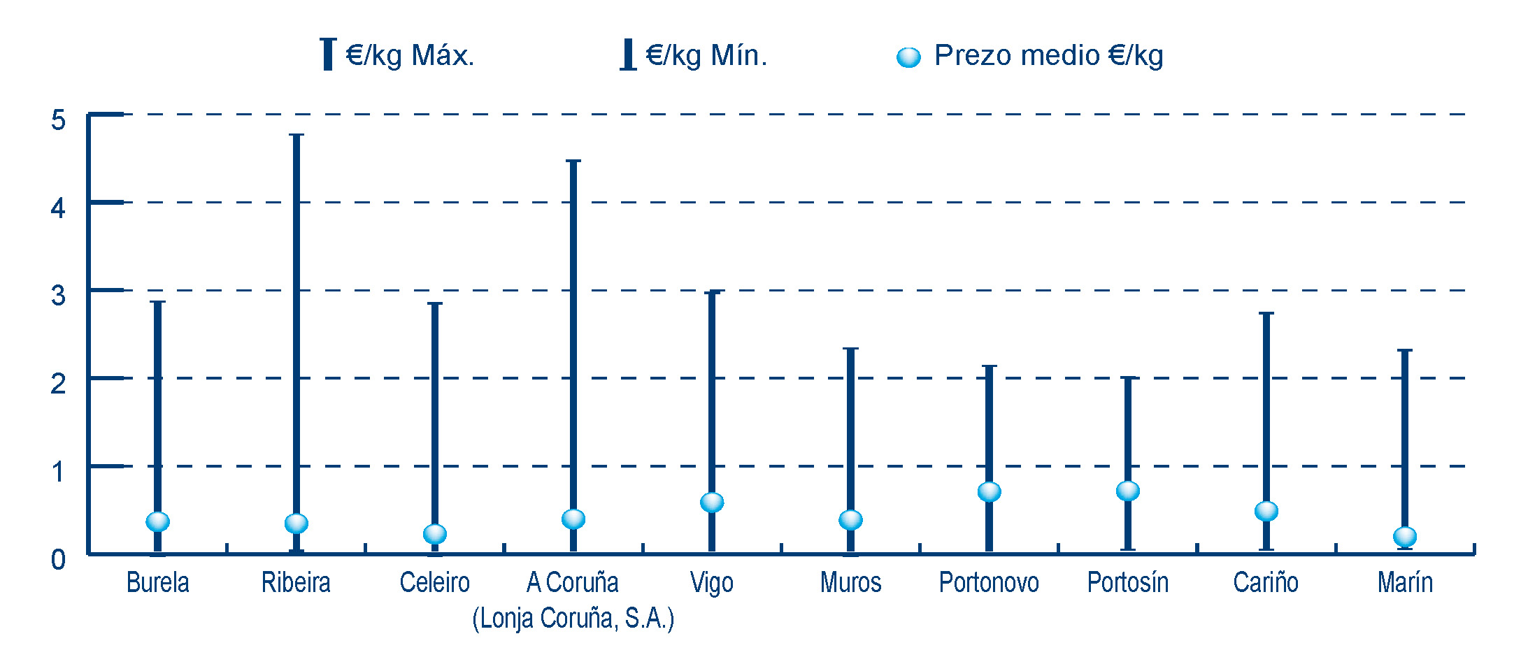 | A Coruña (Lonja Coruña, S.A.) | 112 | 2.604.622 | 10,76% | 1.036.699 | 11,71% | 0,40 |