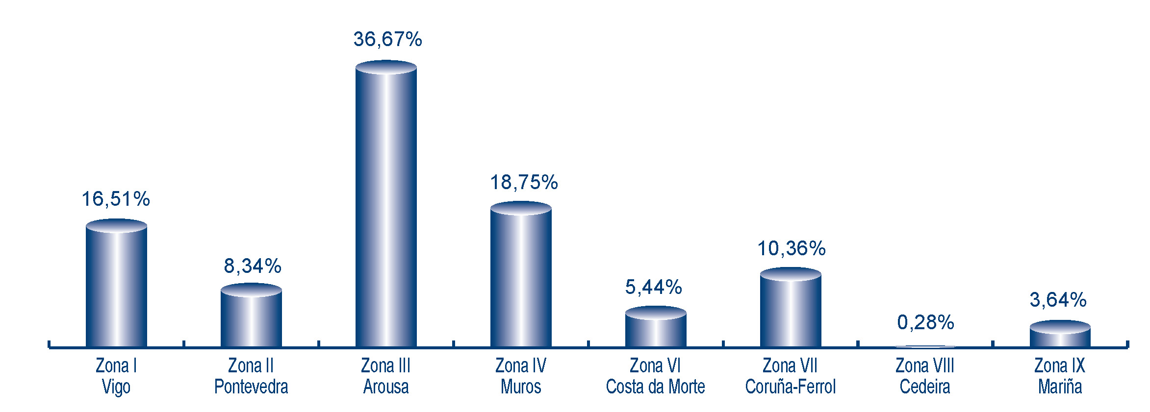 | Zona VI - Costa da Morte | 92 | 759.942 | 5,44% | 313.263 | 6,49% | 0,41 |