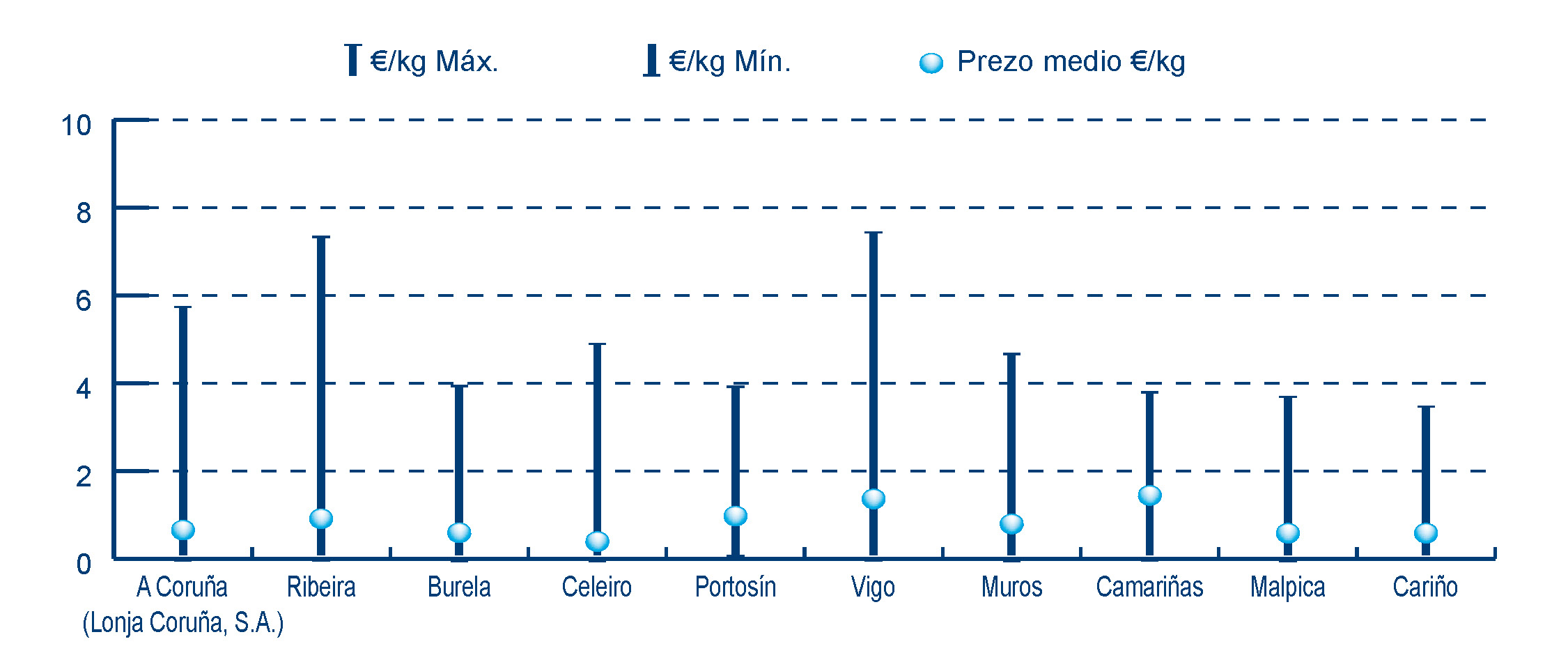 | A Coruña (Lonja Coruña, S.A.) | 283 | 9.287.623 | 33,48% | 6.028.854 | 27,60% | 0,65 |