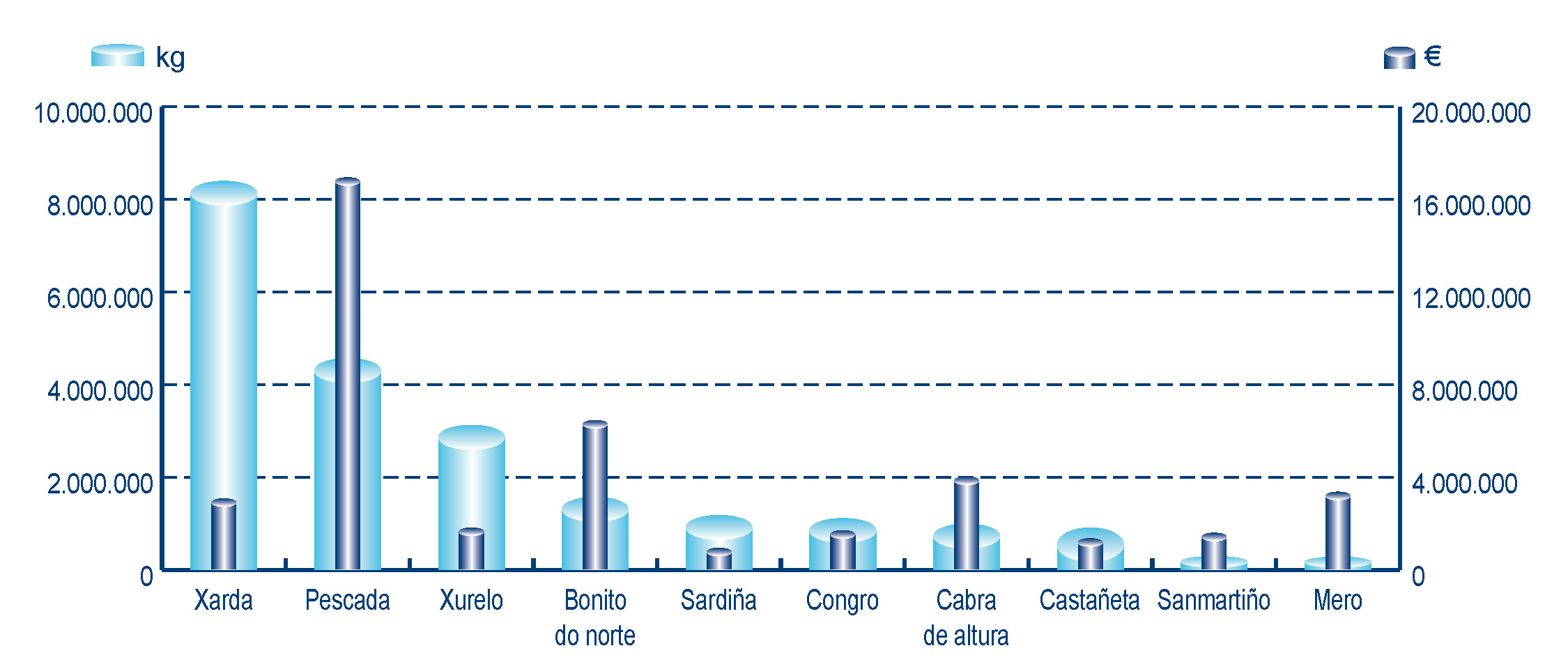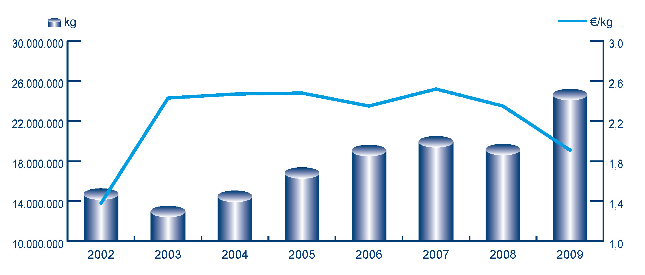 | Nº días | kg | % | Euros | % | Euros/kg | |