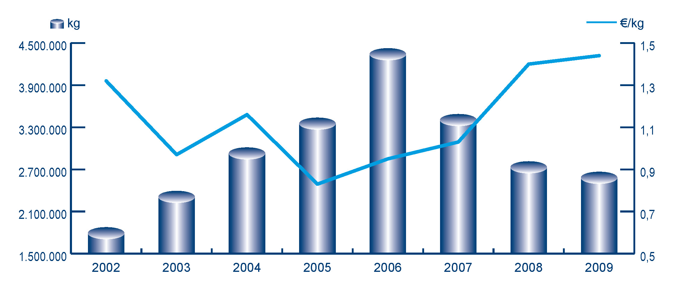 | Nº días | kg | % | Euros | % | Euros/kg | |
