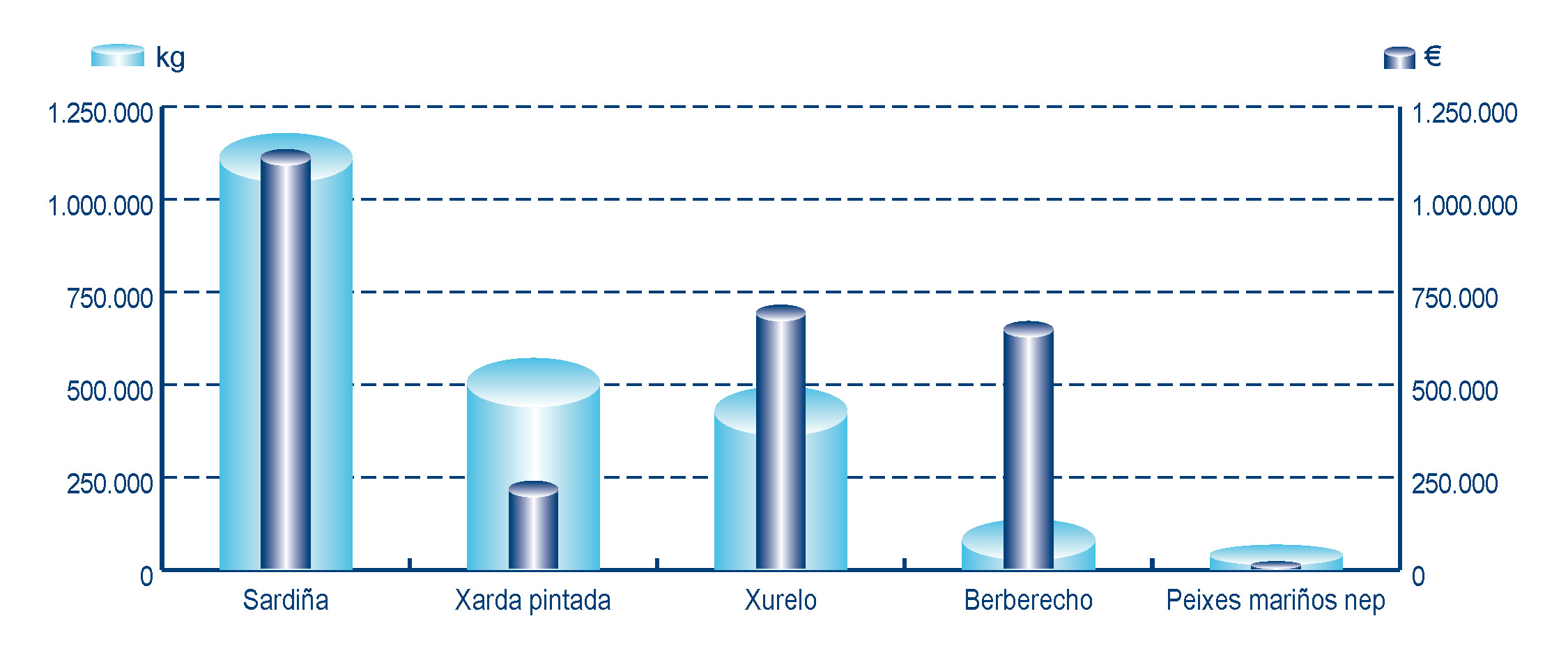 | Peixes mariños nep | 180 | 68.698 | 2,57% | 23.939 | 0,62% | 0,35 |