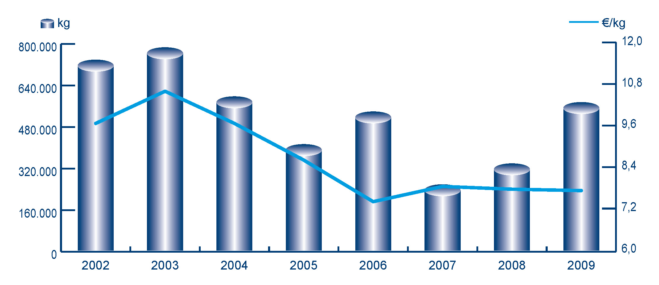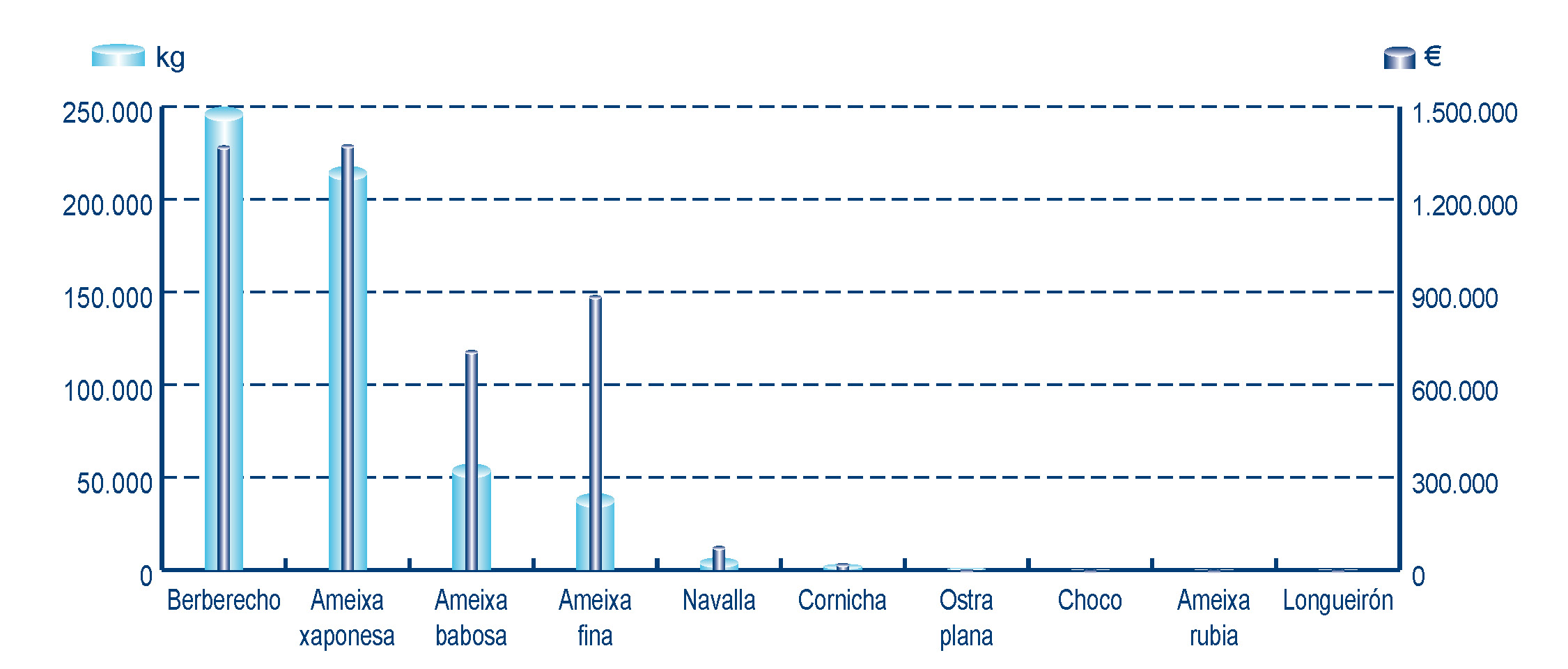 | Nº días | kg | % | Euros | % | Euros/kg | |