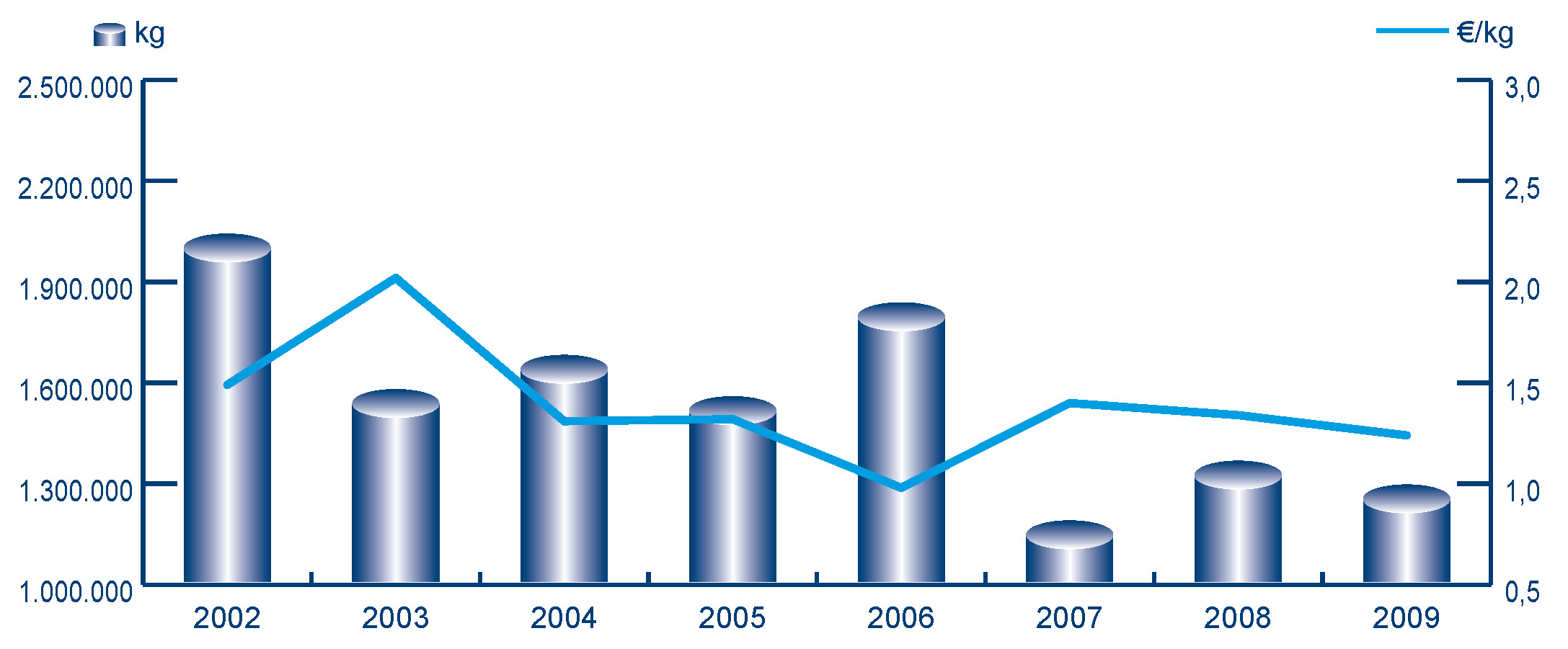 | Nº días | kg | % | Euros | % | Euros/kg | |