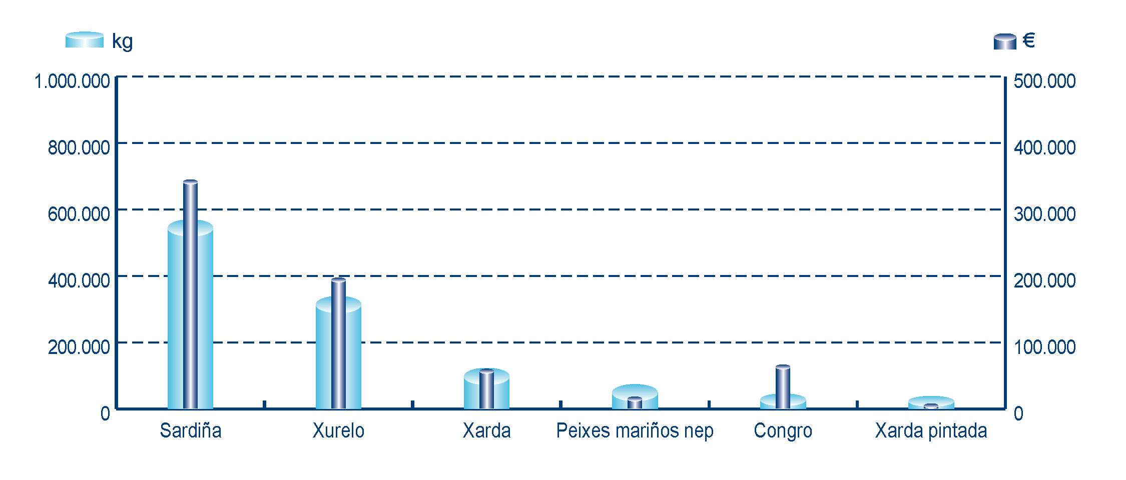| Peixes mariños nep | 194 | 75.077 | 5,77% | 18.823 | 1,17% | 0,25 |