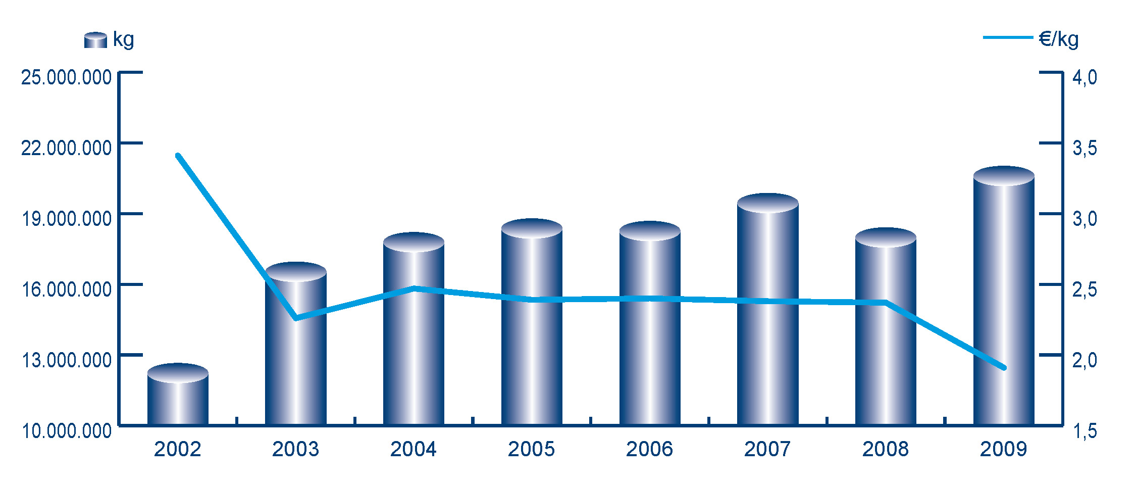 | Nº días | kg | % | Euros | % | Euros/kg | |
