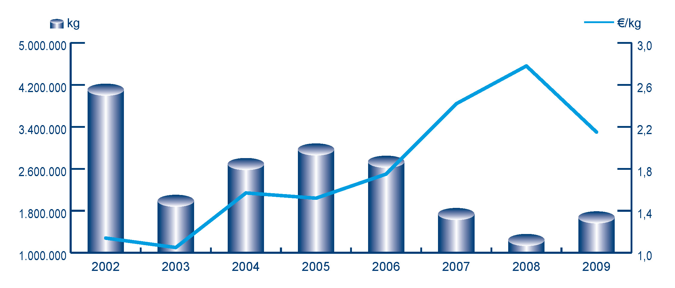 | Nº días | kg | % | Euros | % | Euros/kg | |