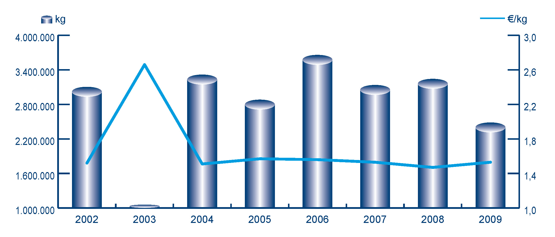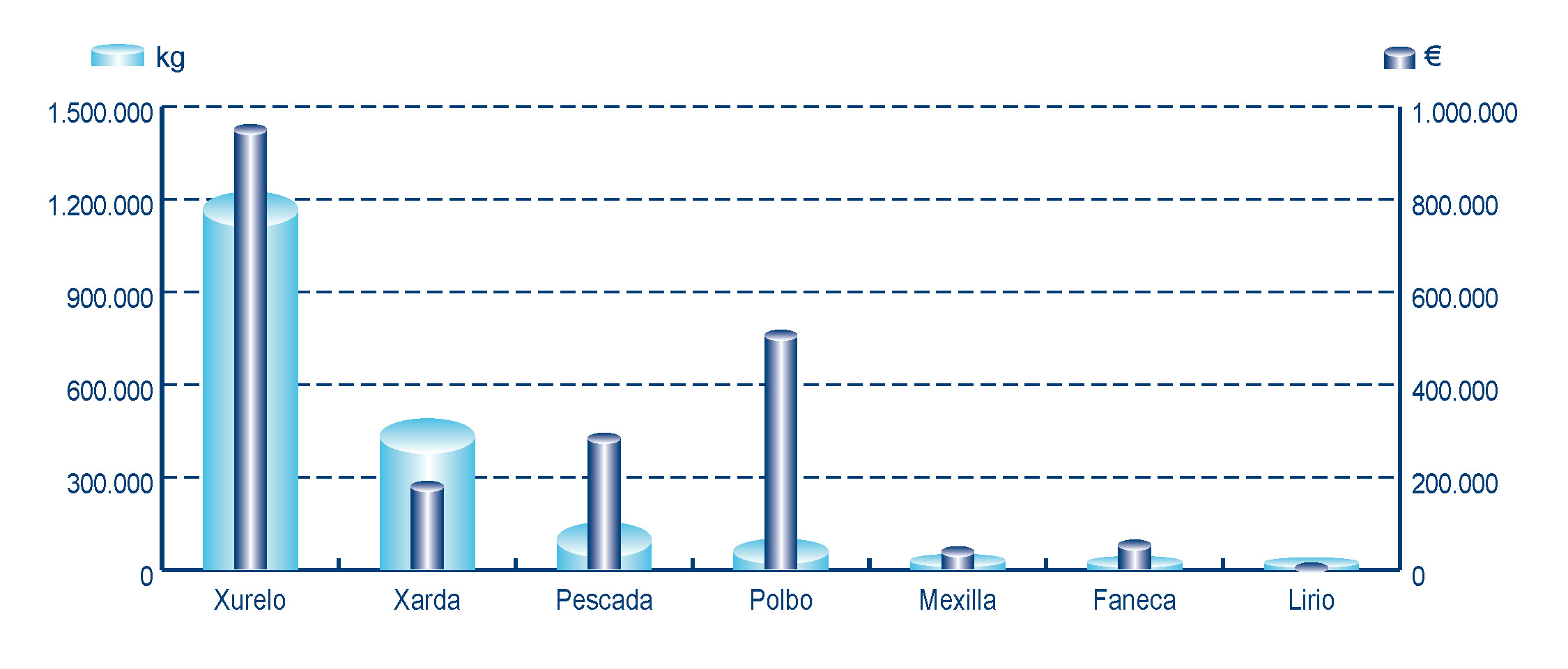 | Nº días | kg | % | Euros | % | Euros/kg | |