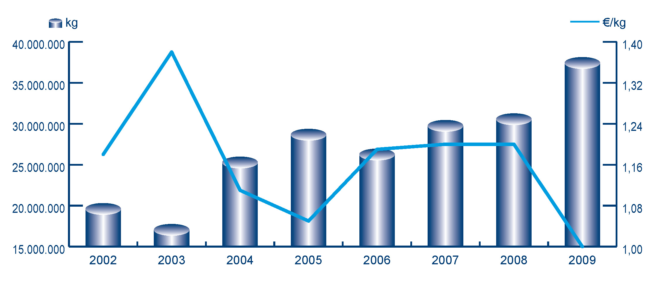 | Nº días | kg | % | Euros | % | Euros/kg | |