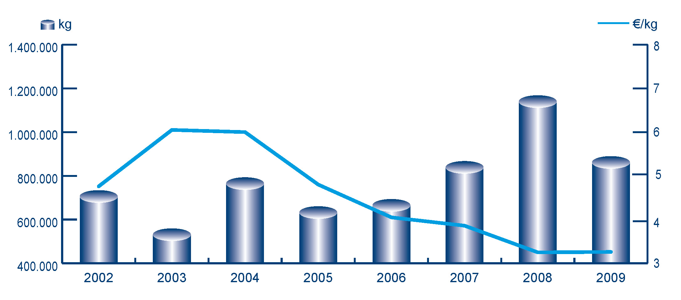 | Nº días | kg | % | Euros | % | Euros/kg | |