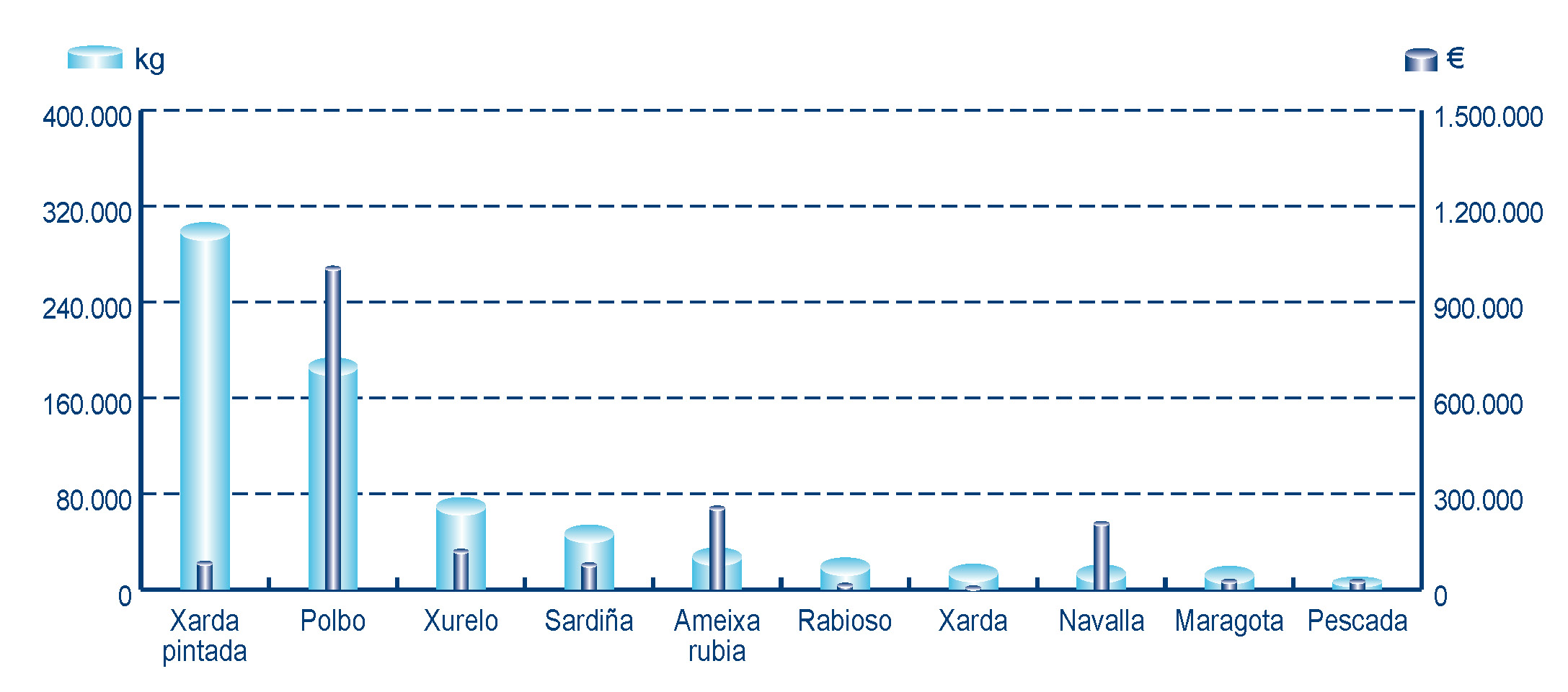 | Xarda pintada | 94 | 306.724 | 34,36% | 90.595 | 3,12% | 0,30 |