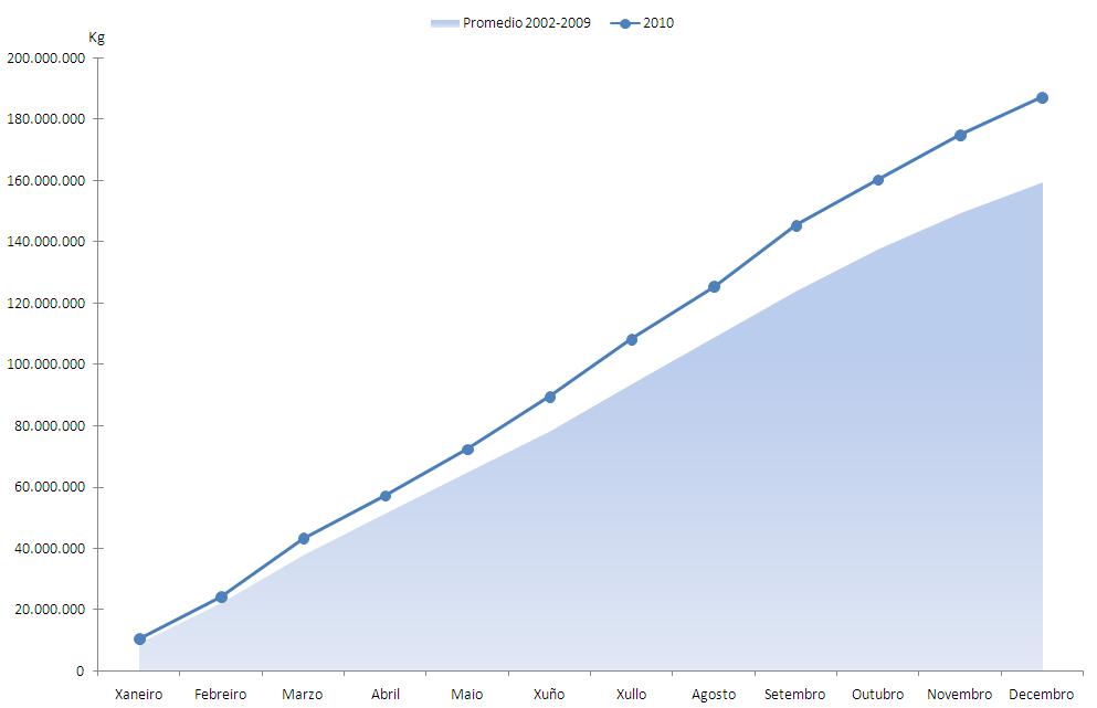 | Cefalópodos | 11.962.418 | 30.799.412 | 8.350.111 | 20.531.459 | 3.612.307 | 10.267.953 | 43,26% | 50,01% |