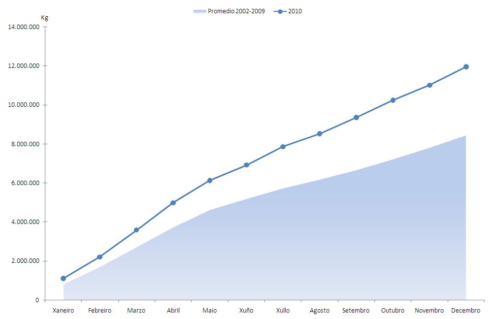 | Polbo cabezón | 1.860.489 | 1.904.467 | 1.325.863 | 1.187.964 | 534.627 | 716.504 | 40,32% | 60,31% |
