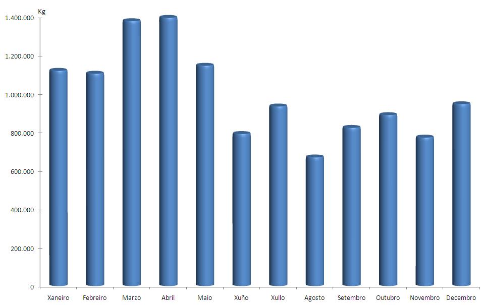 | Polbo | 390.717 | 280.096 | 333.288 | 374.697 | 291.450 | 70.018 | 418.835 | 257.916 | 402.138 | 480.108 | 379.975 | 526.357 | 4.205.594 |