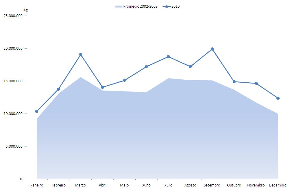 | Xaneiro | 10.349.031 | 30.996.454 | 9.183.298 | 30.762.064 | 1.165.733 | 234.390 | 12,69% | 0,76% |