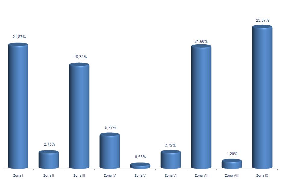 | Zona IV - Muros | 11.009.230 | 5,87% | 20.659.087 | 4,51% | 1,88 |