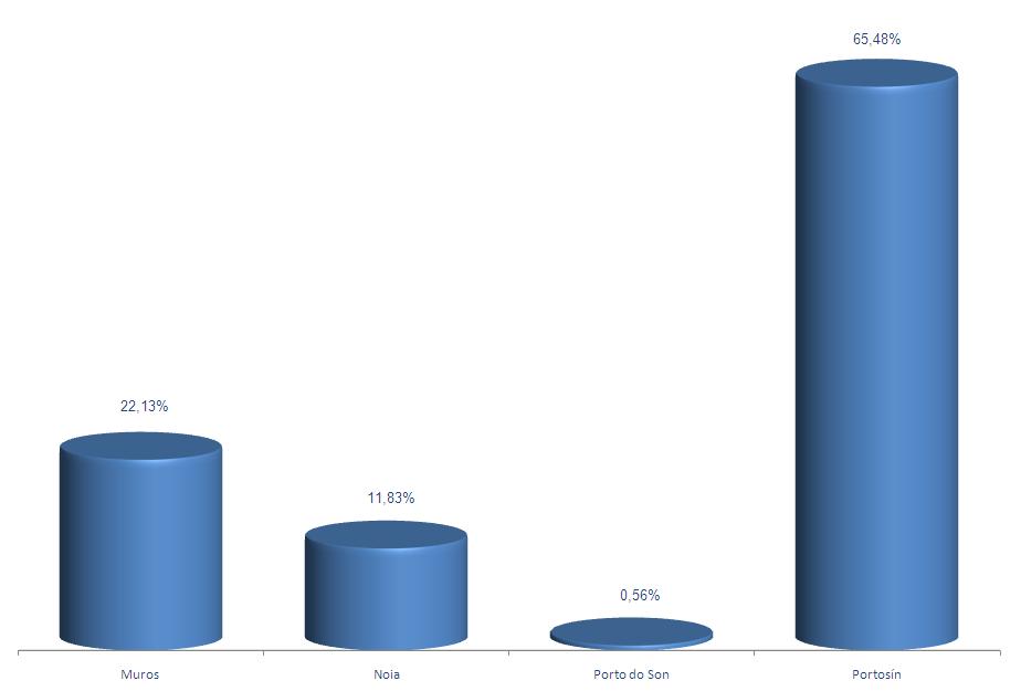 | Porto do Son | 62.140 | 0,56% | 264.540 | 1,28% | 4,26 |