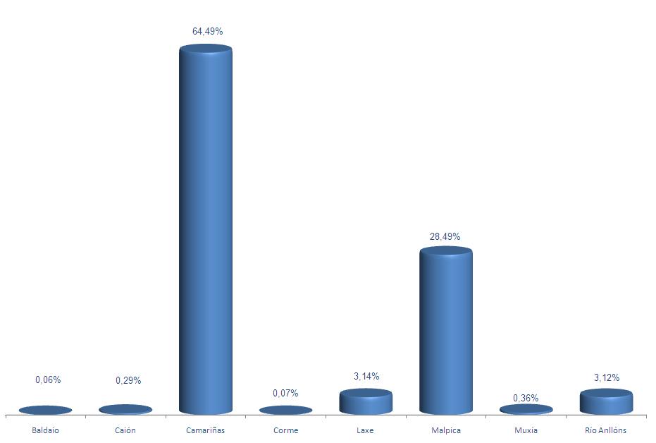 | Camariñas | 3.376.476 | 64,49% | 4.450.492 | 44,09% | 1,32 |