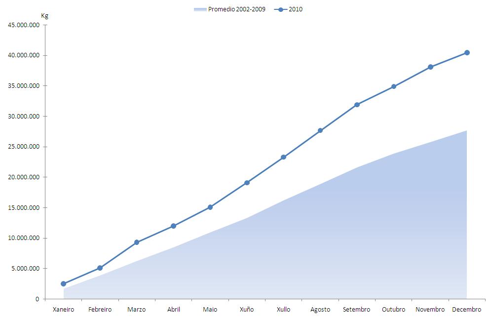 | Bivalvos | 199.261 | 1.695.501 | 181.341 | 1.707.273 | 17.920 | -11.772 | 9,88% | -0,69% |