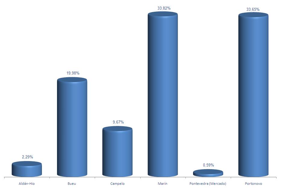 | Pontevedra (Mercado) | 30.175 | 0,59% | 462.355 | 3,11% | 15,32 |