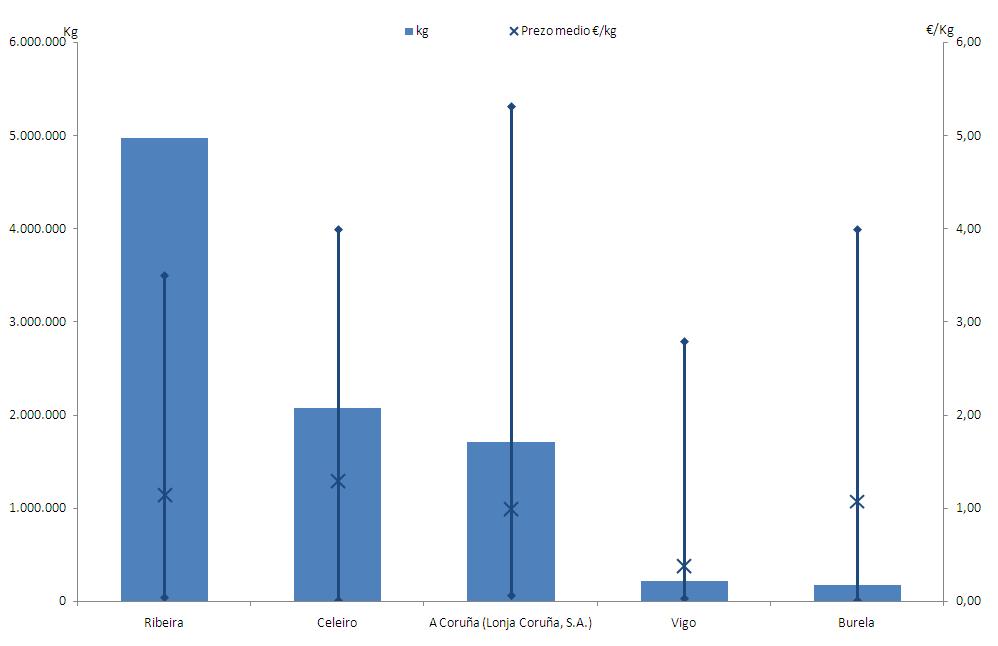 | A Coruña (Lonja Coruña, S.A.) | 260 | 1.708.325 | 18,25% | 1.697.950 | 16,25% | 0,99 |