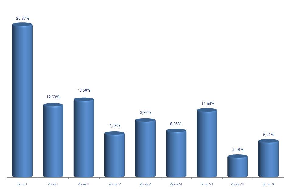 | Zona I - Vigo | 298 | 1.130.016 | 26,87% | 4.040.332 | 24,73% | 3,58 |