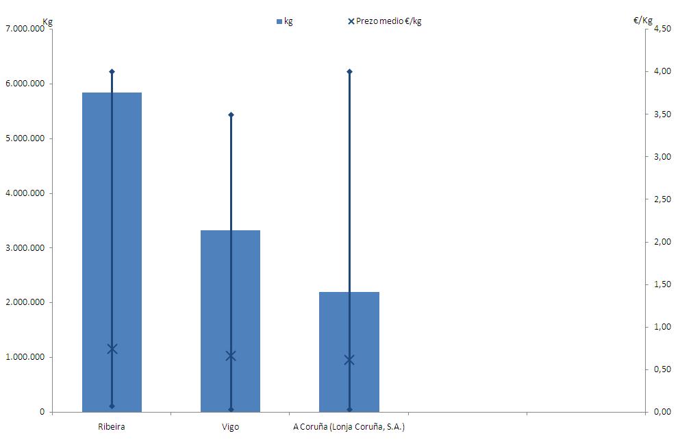 Principais lonxas con vendas de xarda pintada