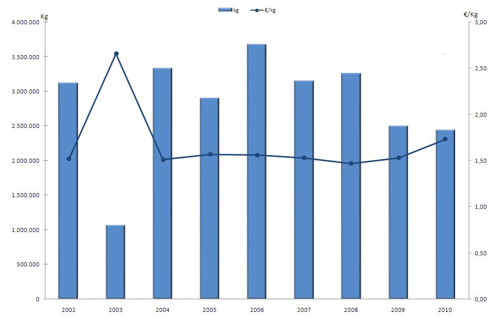 | Nº días | kg | % | Euros | % | Euros/kg | |