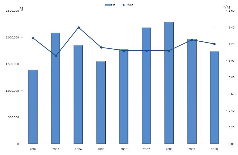 | Nº días | kg | % | Euros | % | Euros/kg | |