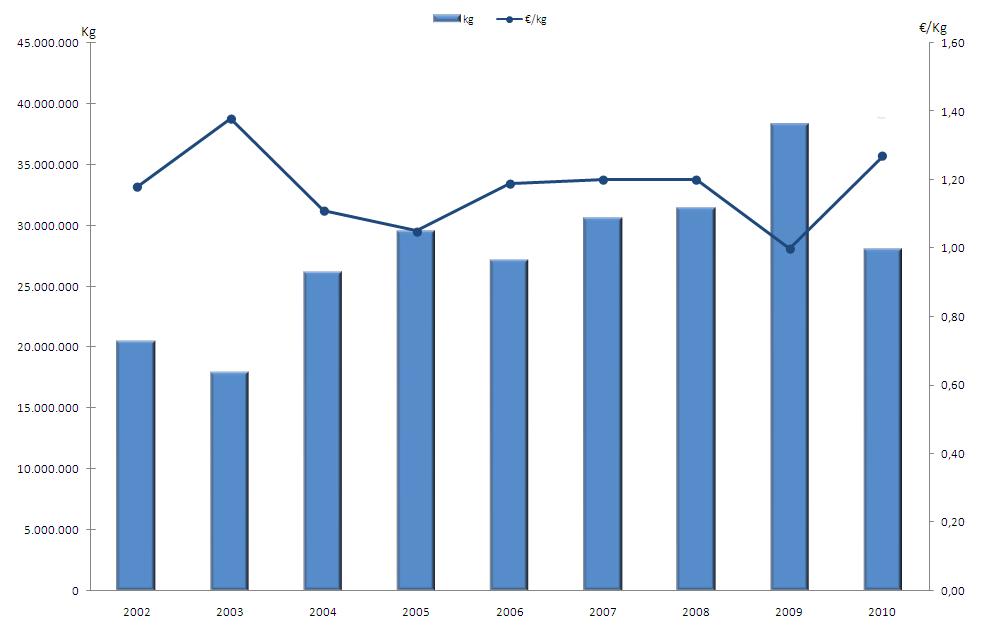 | Nº días | kg | % | Euros | % | Euros/kg | |