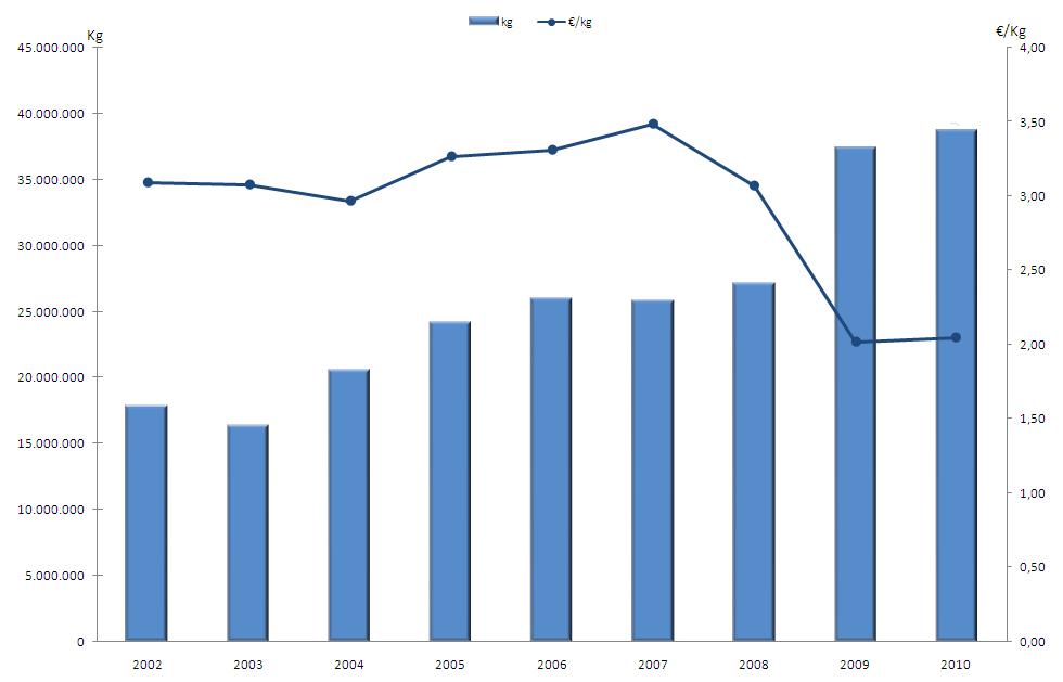 | Nº días | kg | % | Euros | % | Euros/kg | |