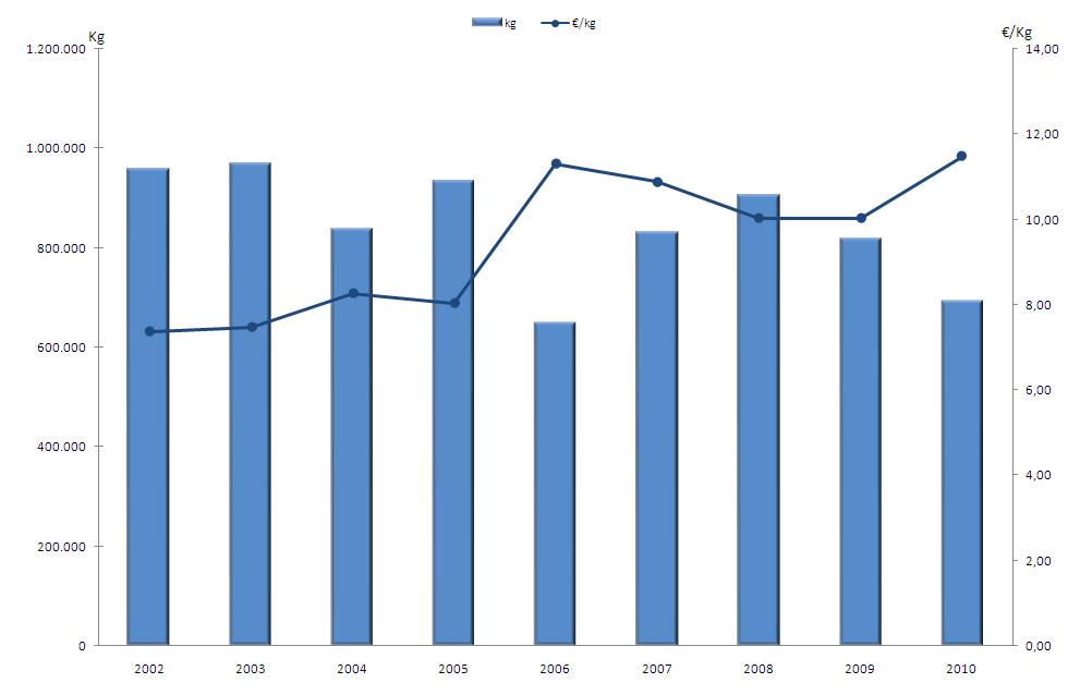 | Nº días | kg | % | Euros | % | Euros/kg | |