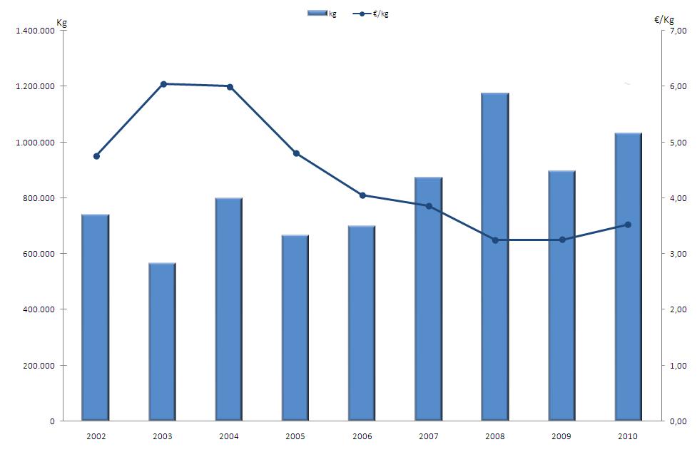 | Nº días | kg | % | Euros | % | Euros/kg | |