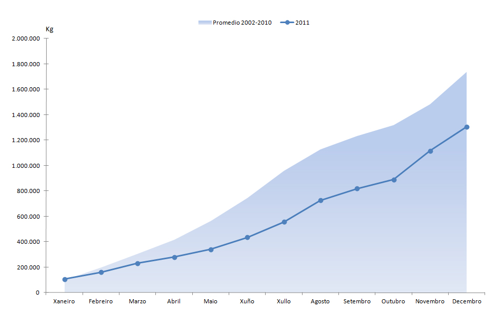 | Camarón común | 90.711 | 2.465.474 | 80.696 | 2.442.676 | 10.015 | 22.798 | 12,41% | 0,93% |