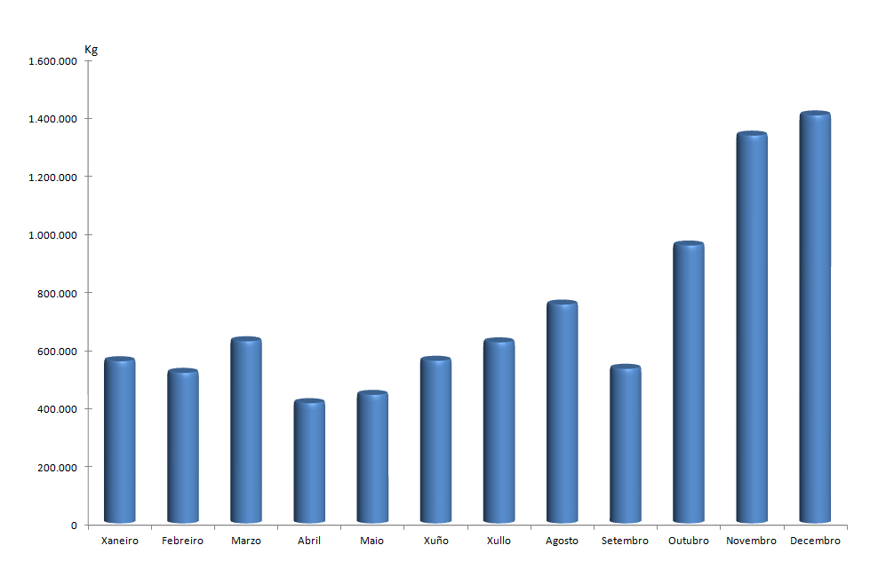 | Berberecho | 196.770 | 213.587 | 241.905 | 125.803 | 117.034 | 155.122 | 185.603 | 206.300 | 154.091 | 508.504 | 759.491 | 450.756 | 3.314.966 |