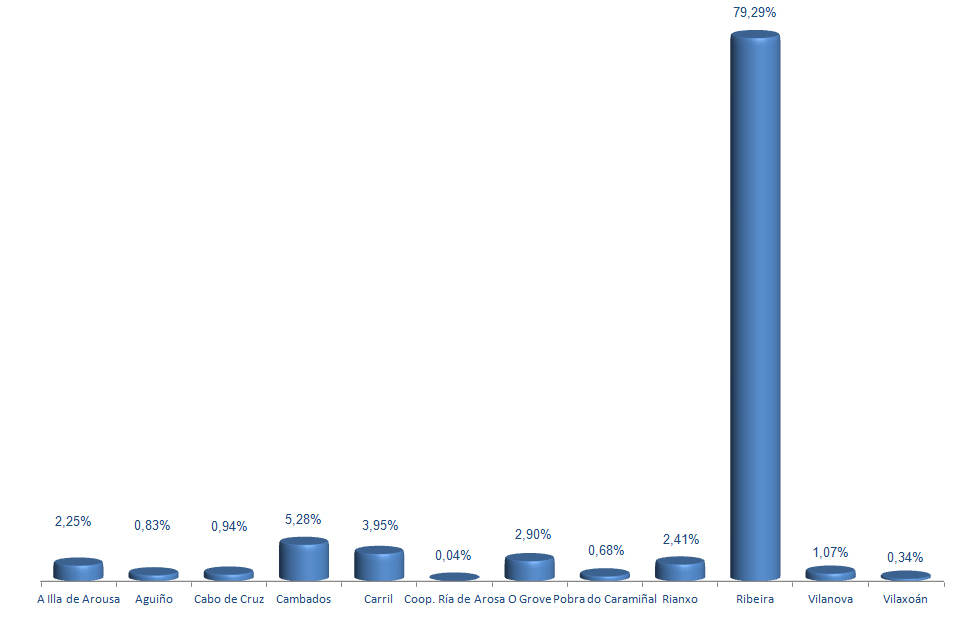 | A Illa de Arousa | 626.789 | 2,25% | 7.072.381 | 8,93% | 11,28 |