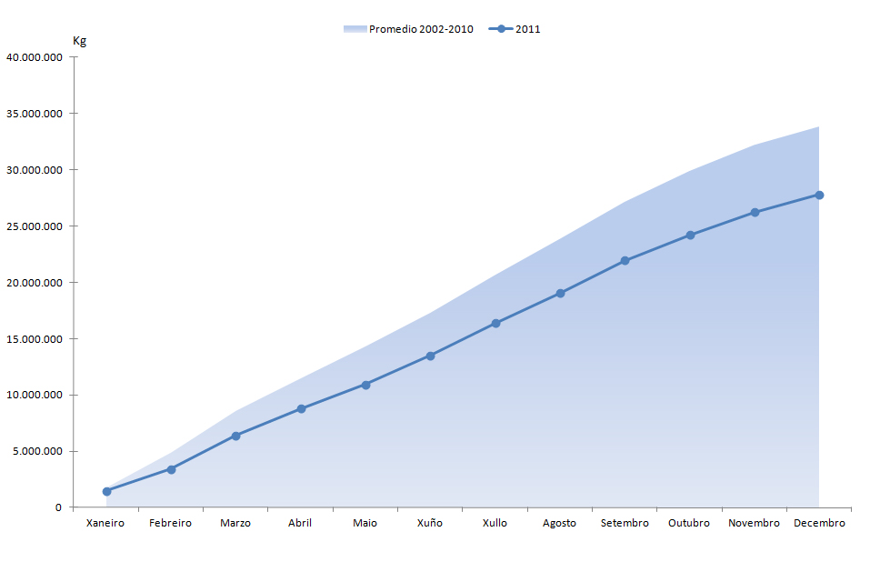| Rianxo | 670.454 | 5.002.374 | 687.614 | 4.889.232 | -17.160 | 113.142 | -2,50% | 2,31% |