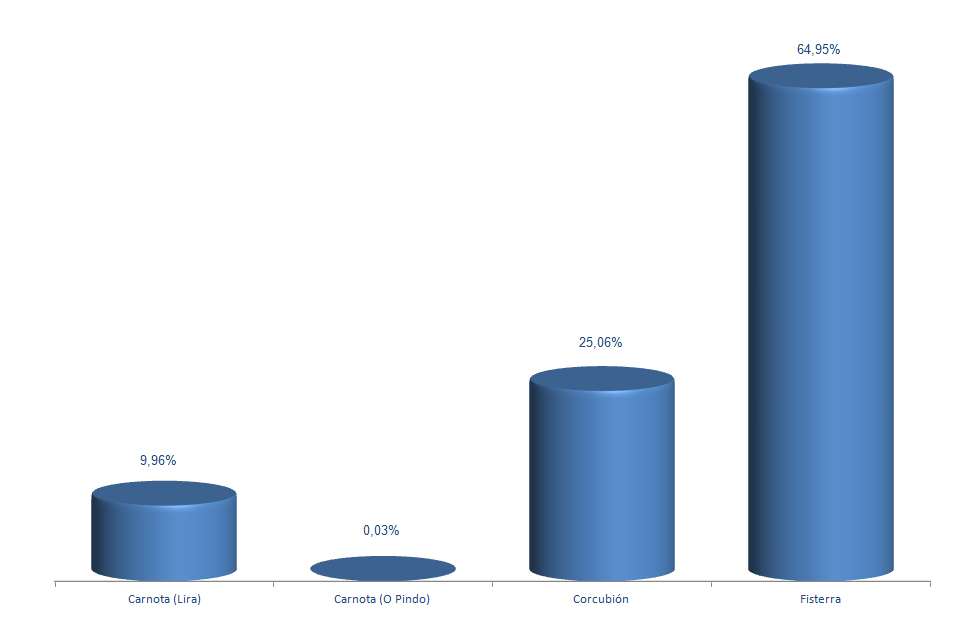 | Fisterra | 628.210 | 64,95% | 2.566.698 | 60,39% | 4,09 |
